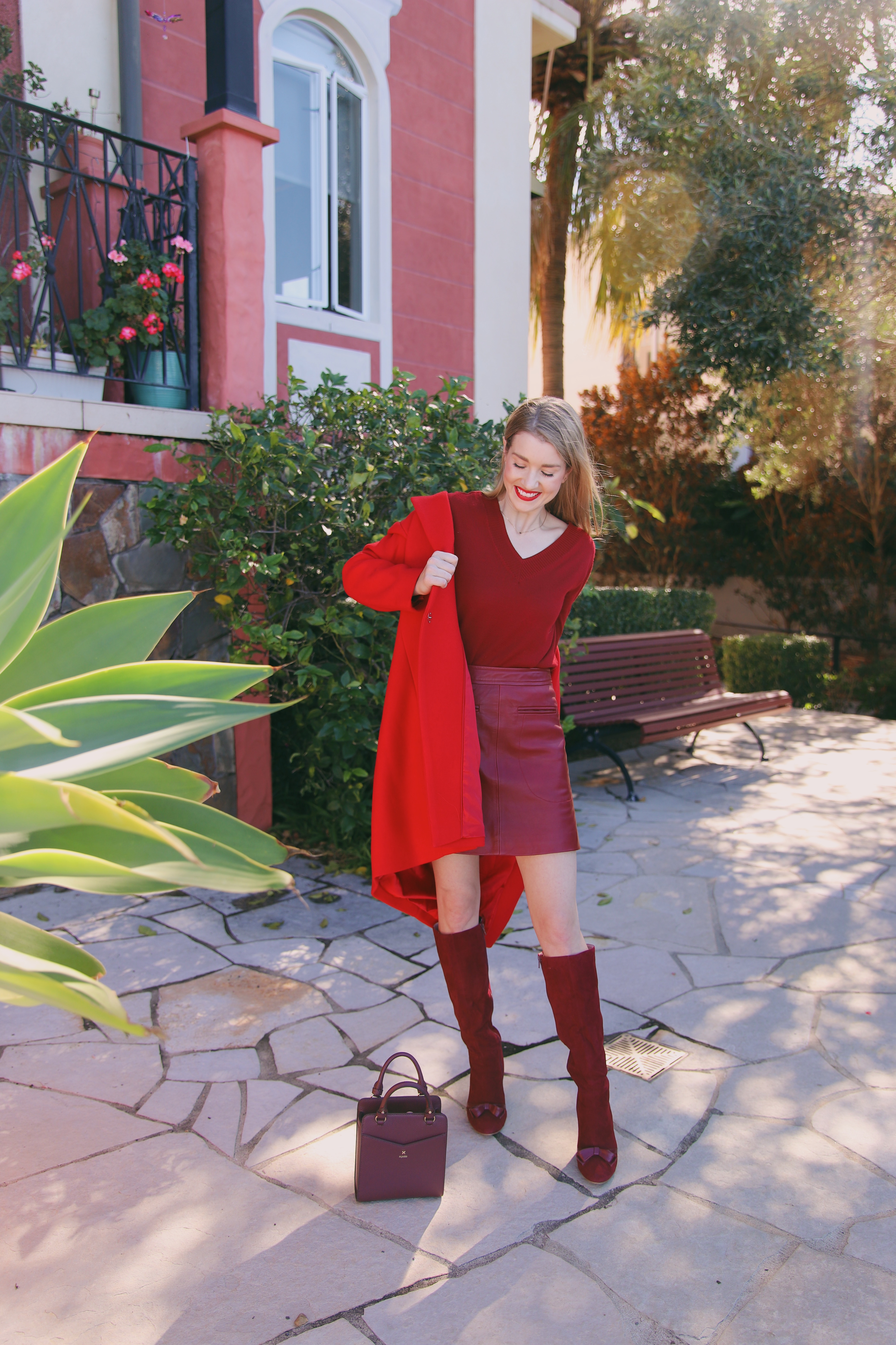 I’ve noticed so many beautiful deep burgundy shades hitting stores lately- from wine to plum, maroon to cherry, and I thought it would be fun to put an outfit together that celebrated all these different shades.