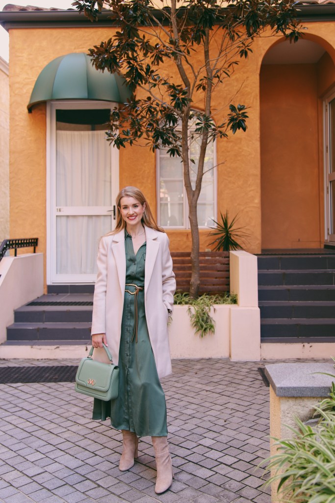 Forever New Dress, Forever New Coat, Seed Heritage Boots, Mimco Bag (old, similar here), Country Road Belt (old, similar here)
