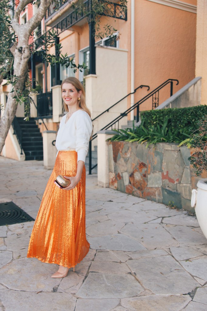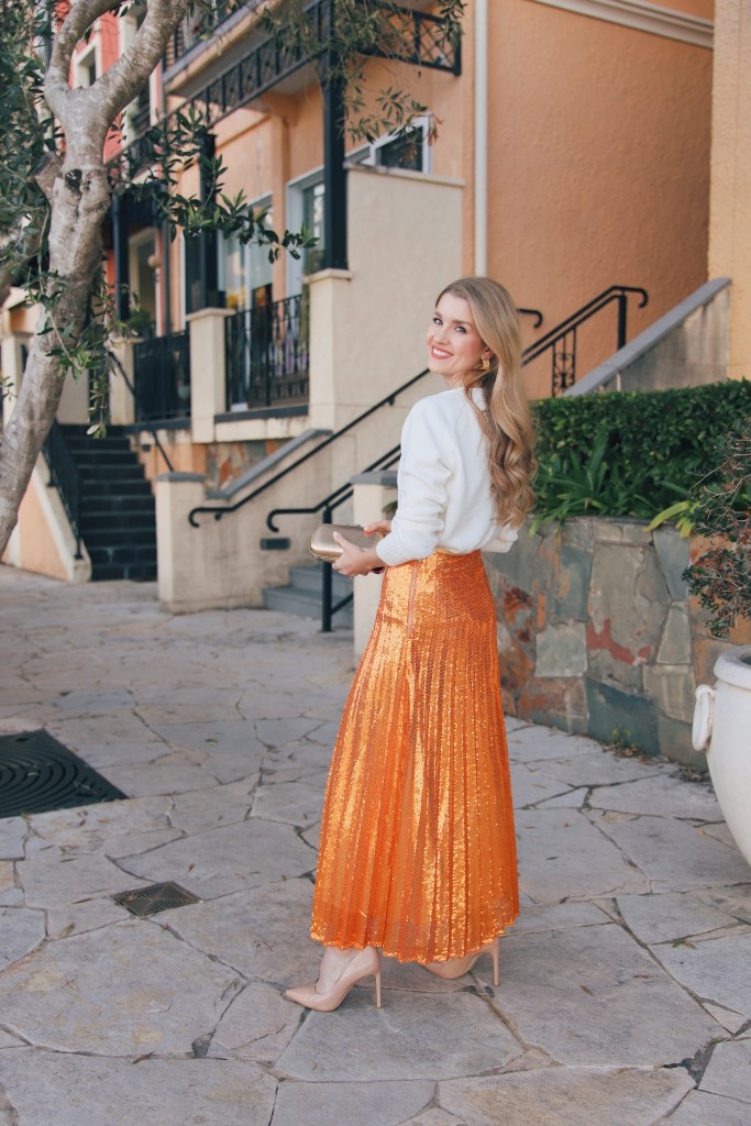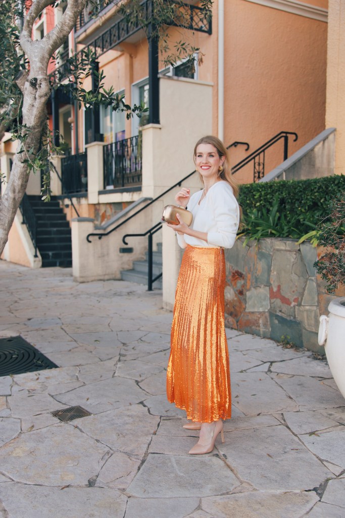 My ballet teacher often wore a black sequinned jacket out to events, and it always looked so chic, and I was inspired to add a bit of fun to my outfit with a sequinned skirt. Below, I’ve linked matching pieces that will give you maximum impact, as well as cute separates to add a hint of glamour to your outfits.