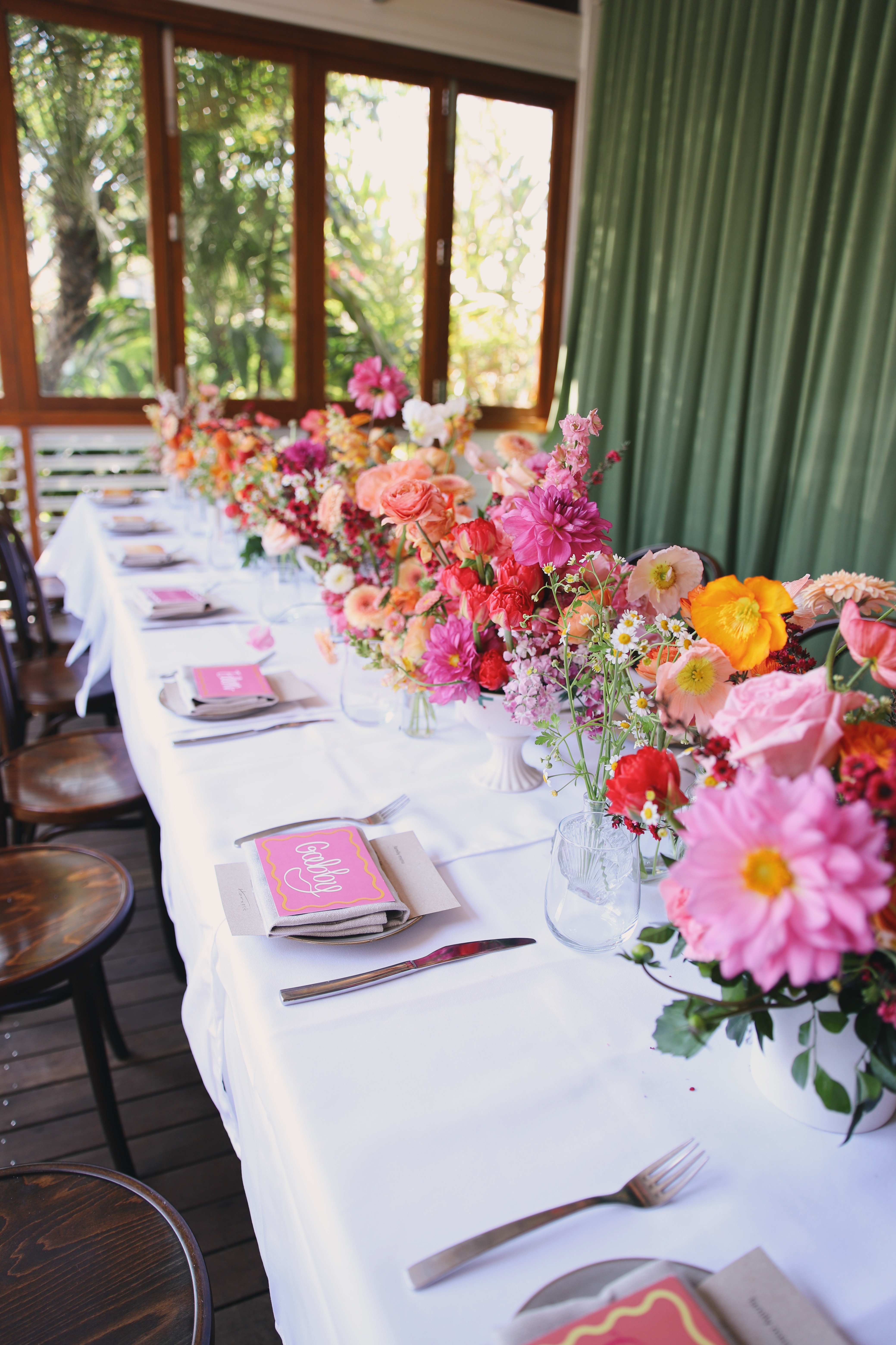 I knew I wanted something really bright and fun, and very feminine. With the help of the insanely talented Belle from Bees Blossoms, who gave us the most beautiful tablescape, the brightest and quirkiest invitations and name cards by It’s Yours Collective, and a fabulous lunch by Harvest Newrybar, it was the day of my dreams, and so special in every way.