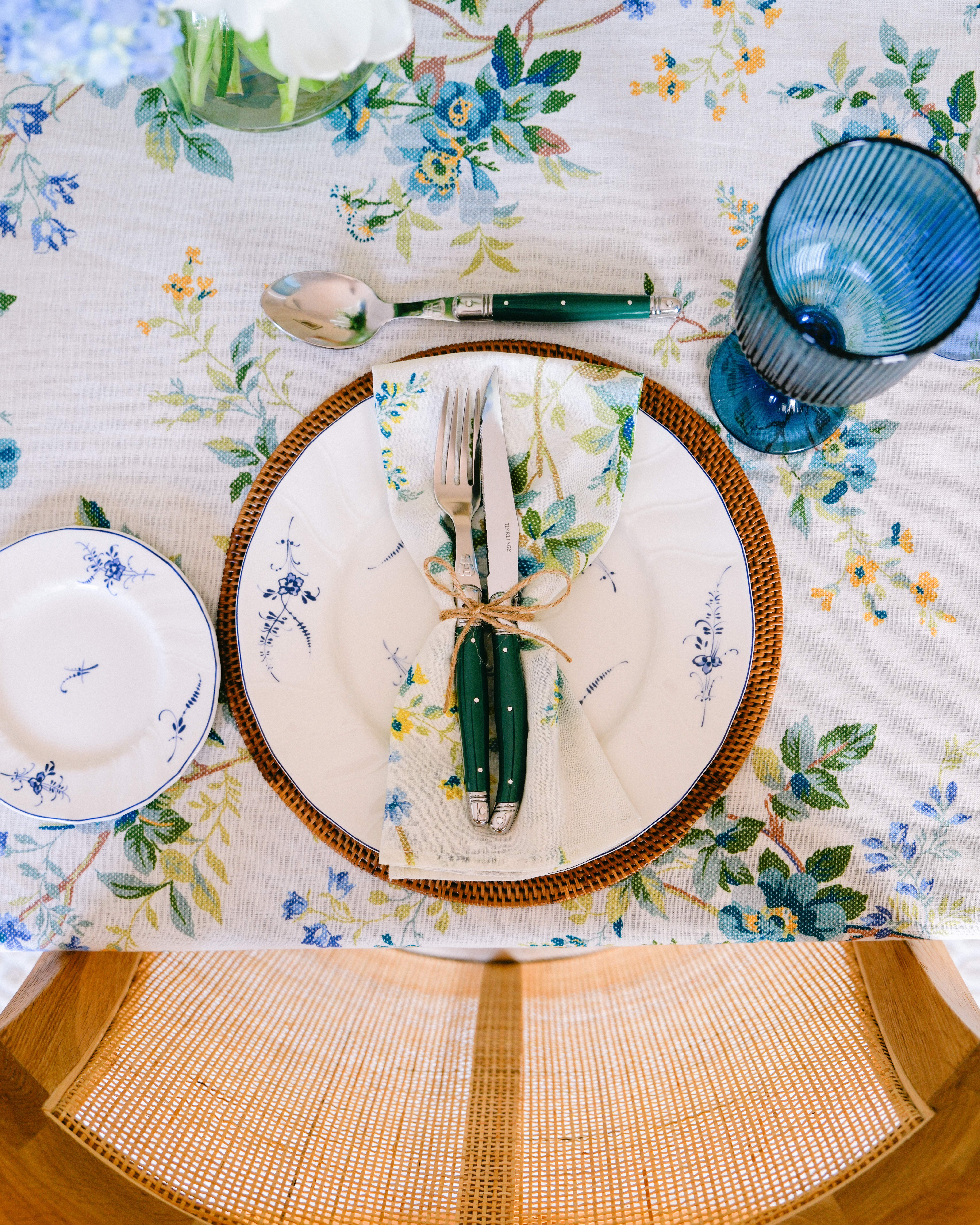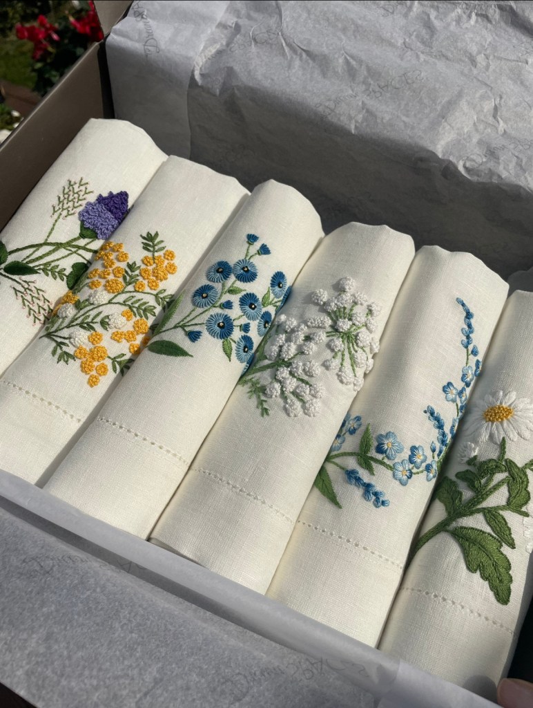 I had so much fun planning our lunch and putting together a beautiful tablescape- the only difficulty was sticking with one idea! Between delicately embroidered napkins, artfully patterned crockery and even joyfully coloured cutlery and glassware, I found so many pieces that I fell in love with.