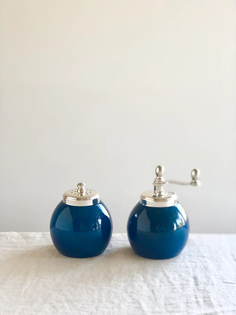 D’Ascoli table cloth and napkins, Villeroy & Boch dinner plates and bread plates and bowls, blue water goblets, Laguiole cutlery, Heritage cake stand, serving platters and salad bowls, Vue wine glasses, Country Road vases