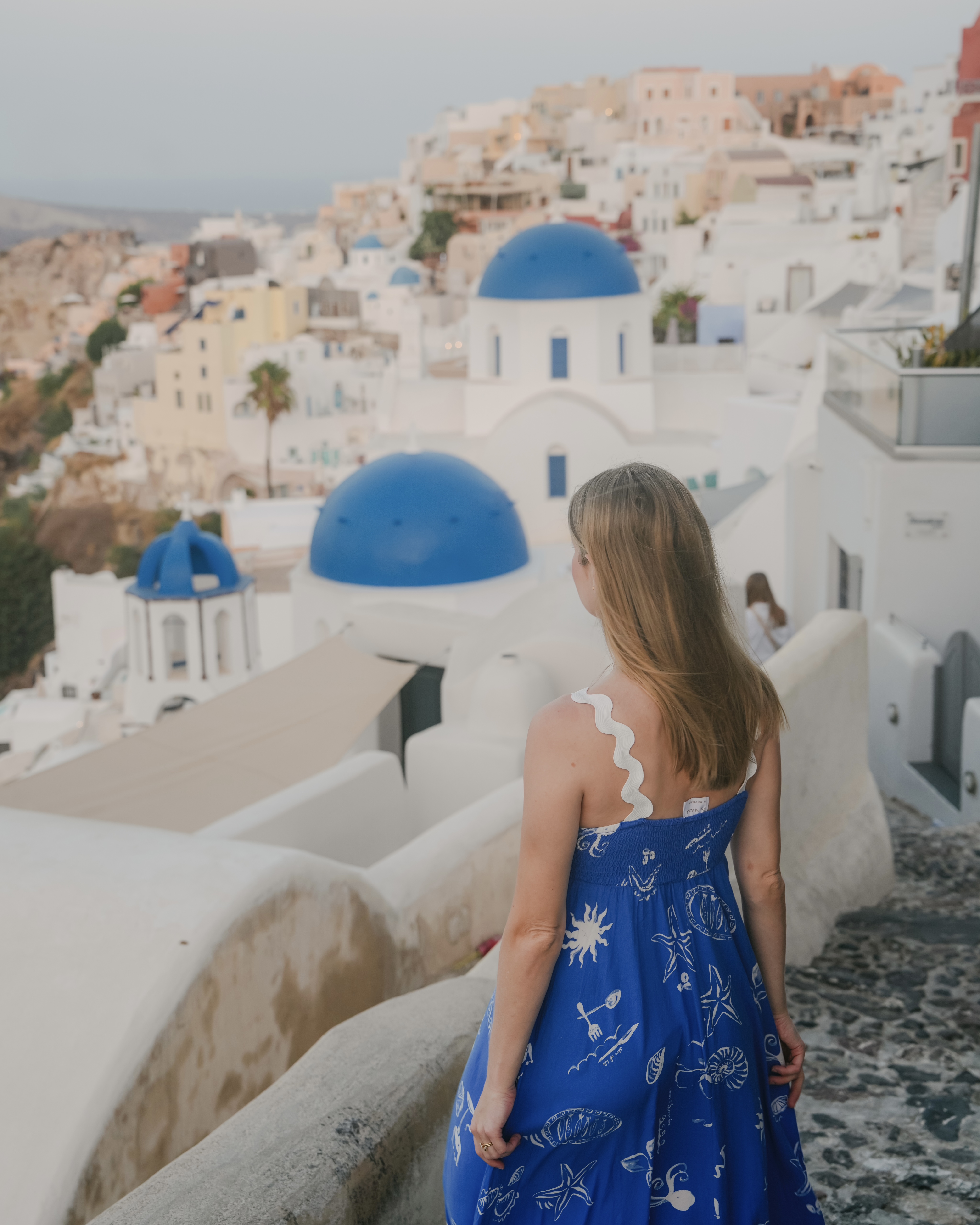 As previously mentioned, we had fantastic views from our balcony of the famous blue domes. We had been told that if you wanted a photo, you’d better be prepared to be up at sunrise, and judging by the queues we saw snaking through the streets in both directions just for the money shot, that was absolutely true.